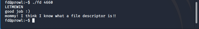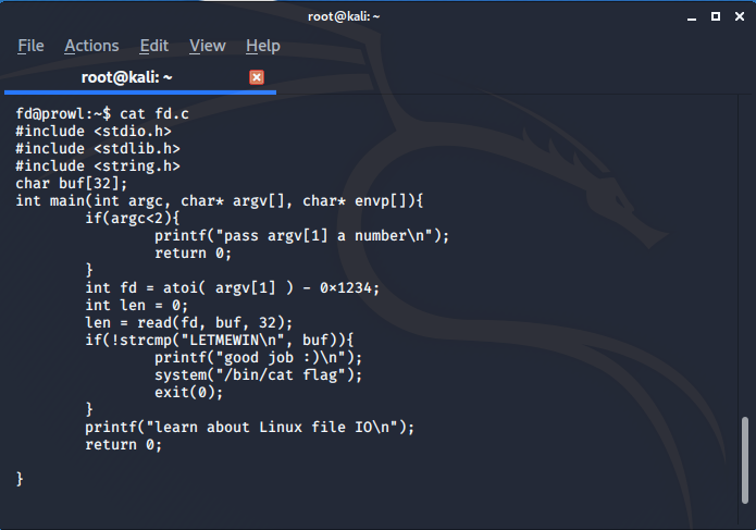 fd.c라는 파일이 있기에 cat으로 어떤내용인지 확인합니다.