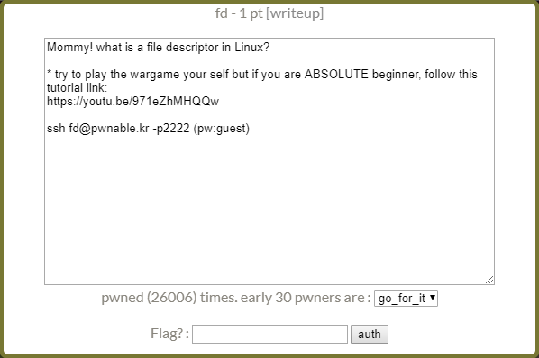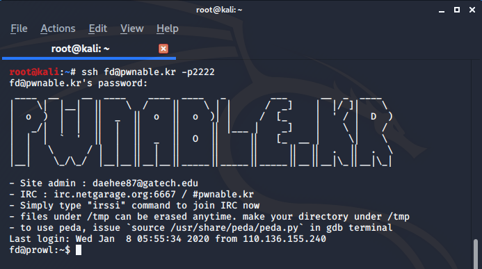 ssh fd@pwnable.kr -p2222로 문제 접속하기