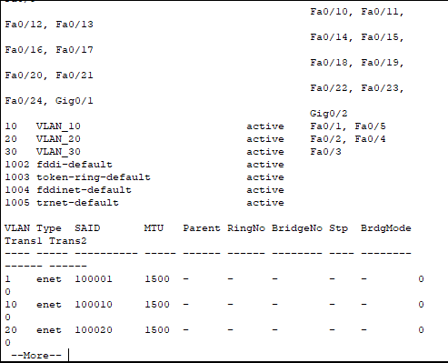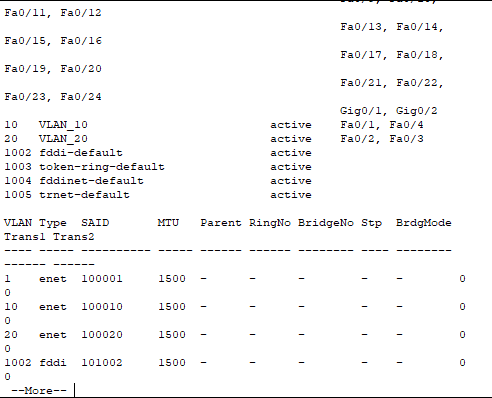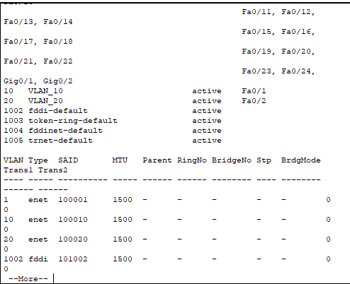 VLAN10과 VLAN20이 설정된 것을 볼수있다.