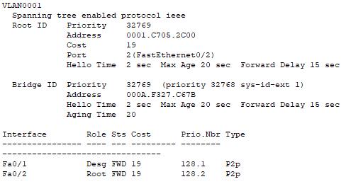 show spanning-tree 명령어로 Bridge값과 MAC주소를 확인할 수 있다.