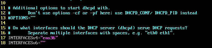 "vi /etc/default/isc-dhcp-server" 접근 후 네트워크 인터페이스 추가해주기