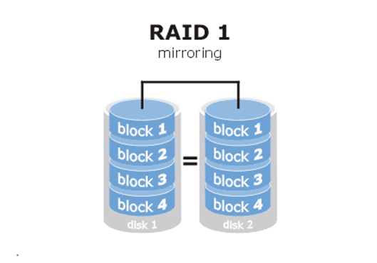 미러링(Mirroring) : 데이터의 안전성을 최우선으로 하여, 같은 데이터를 중복 보관한다. 최소 2개의 디스크 필요, 고비용, 저속도