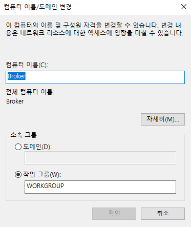 컴퓨터 이름 설정 : 실행창에 sysdm.cpl 입력