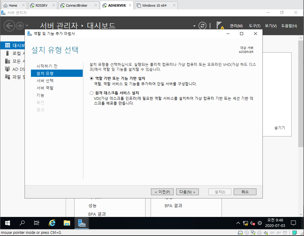 2. 역활 기반 또는 기능 기반 설치 선택
