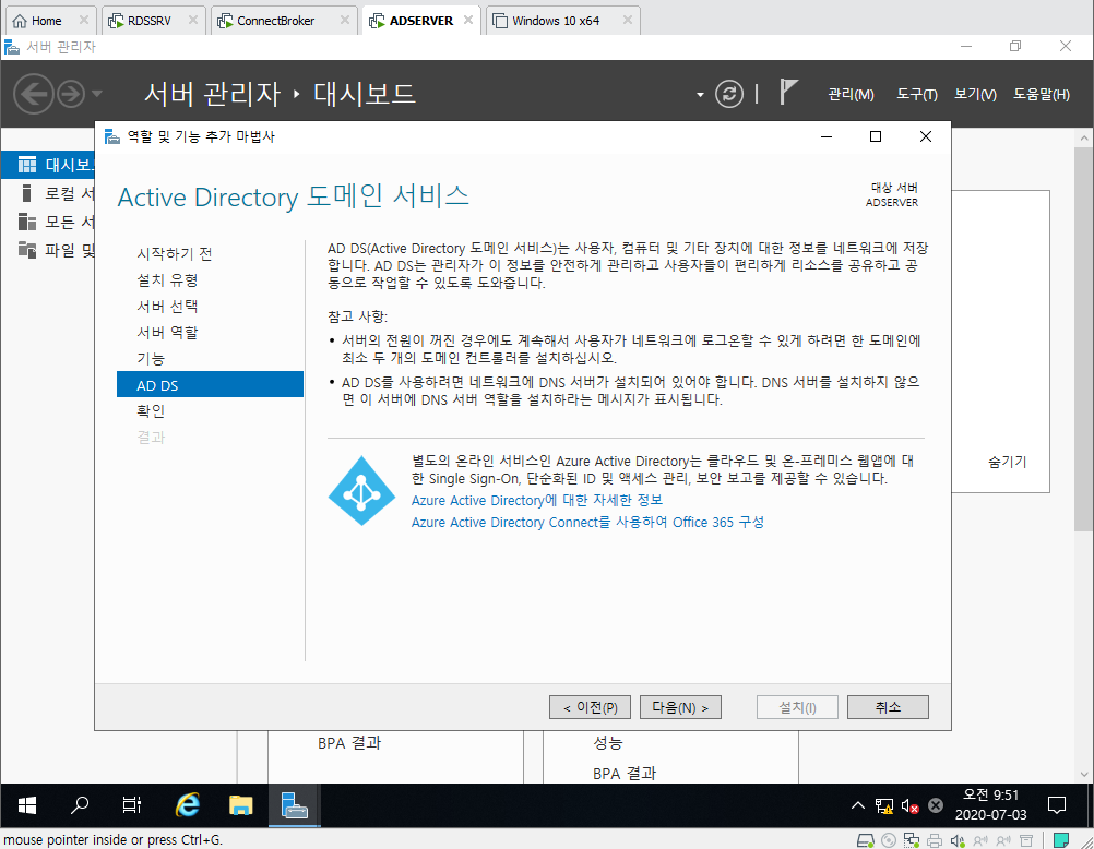 4. Active Directory 도메인 서비스 선택