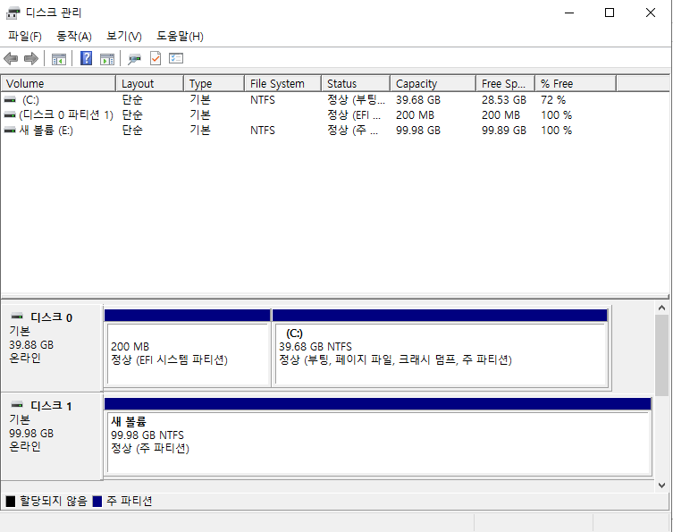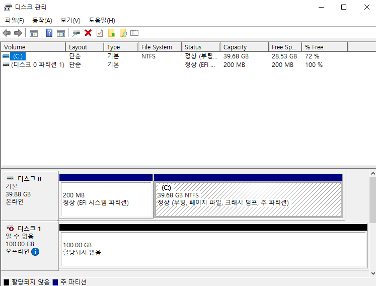 16. 100GB디스크가 만들어진것을 확인할 수 있습니다.