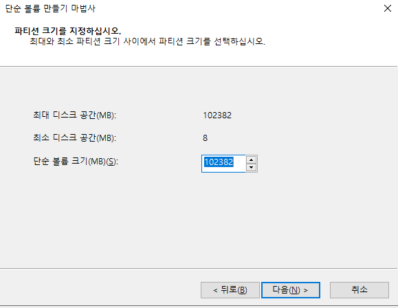 가상컴퓨터를 만들기 위해 100GB의 저장공간을 증설합니다.