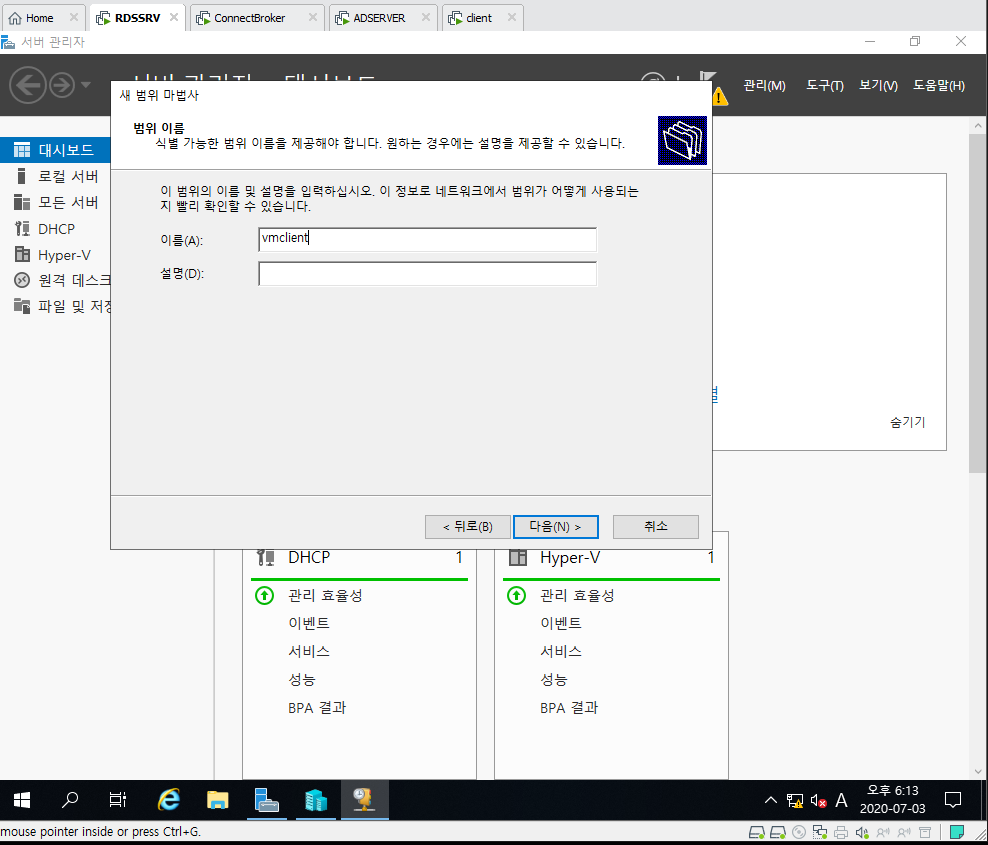 9. 하고싶은 이름으로 지정하시면 됩니다. 예) vmclient
