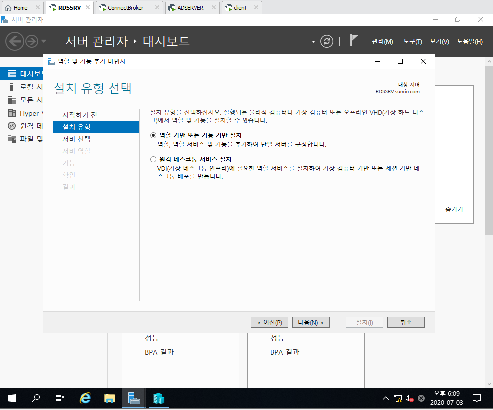 2. 역할 기반 또는 기능 기반 설치 선택