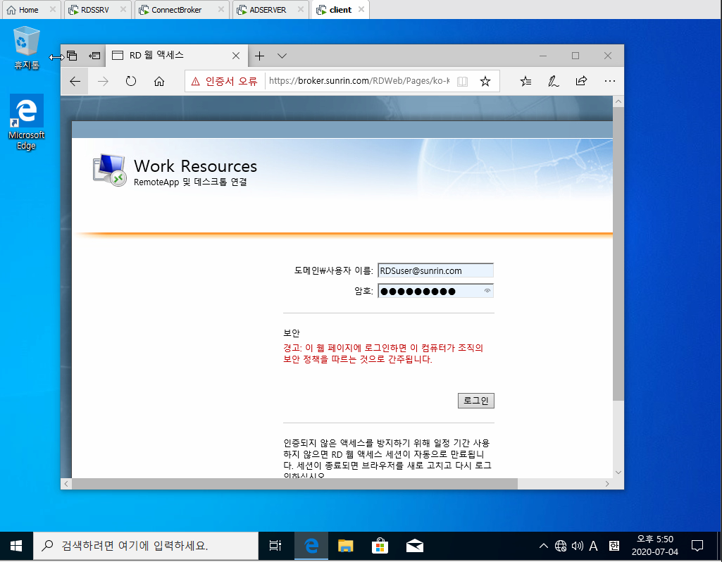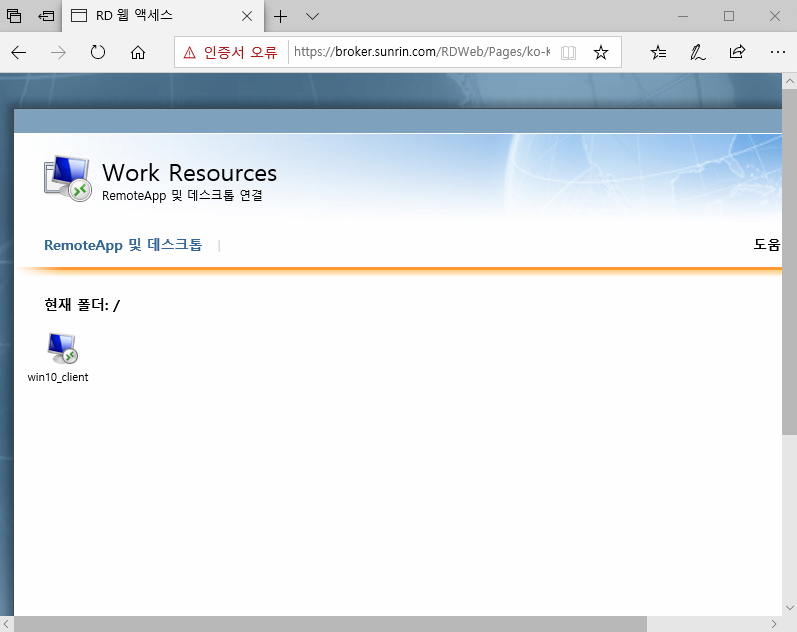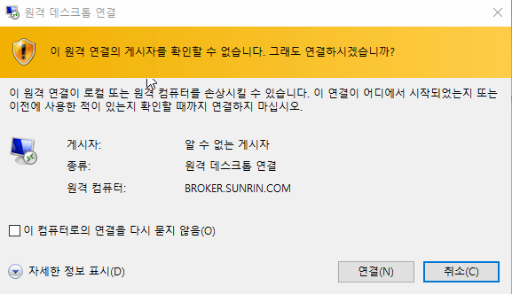 7. 웹에서 https://broker.sunrin.com/rdweb 을 접속합니다. 세부 정보 클릭합니다.