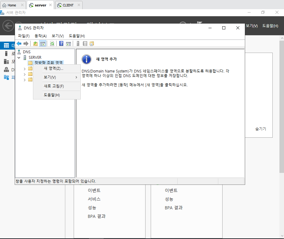 18. DNS 관리자에 영역 우클릭 후 새 호스트(A 또는 AAAA) 클릭
