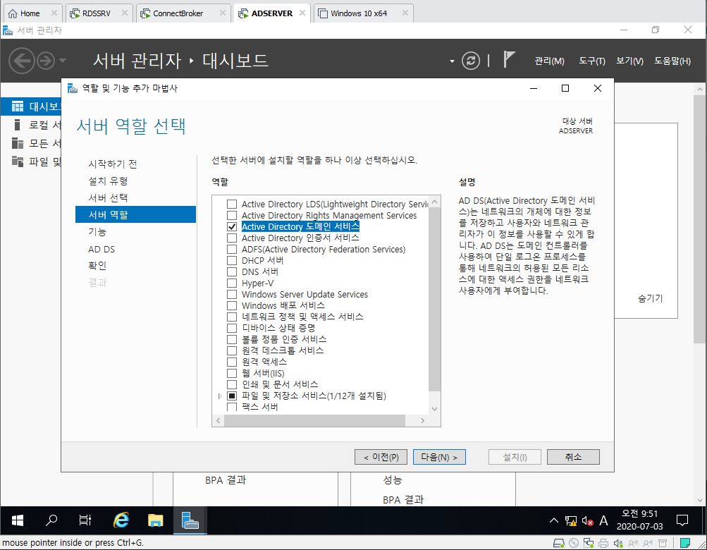 4. AD 도메인 서비스 클릭
