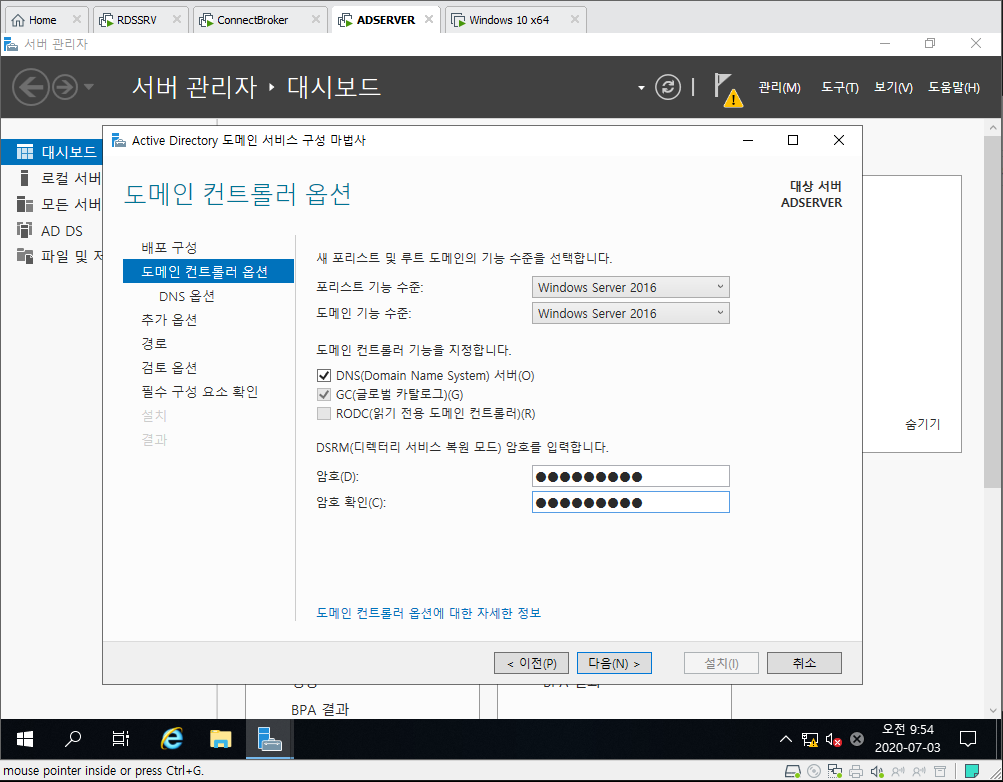 11. DSRM 암호를 입력합니다.