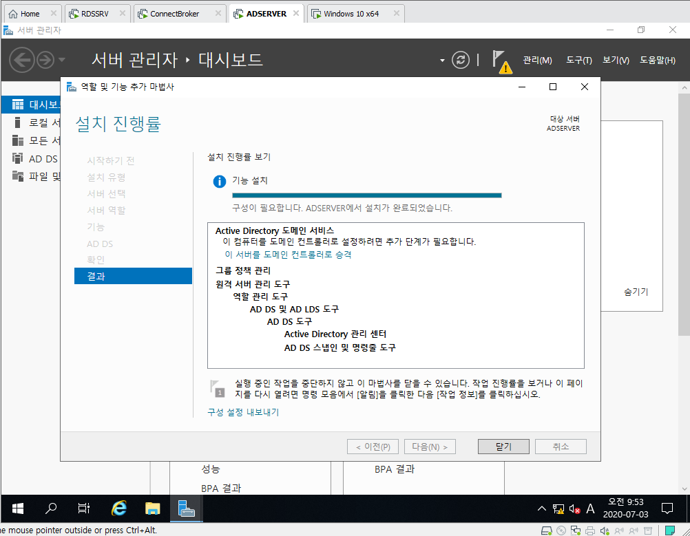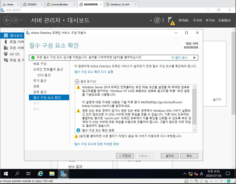 9. 이 서버를 도메인 컨트롤러로 승격 클릭