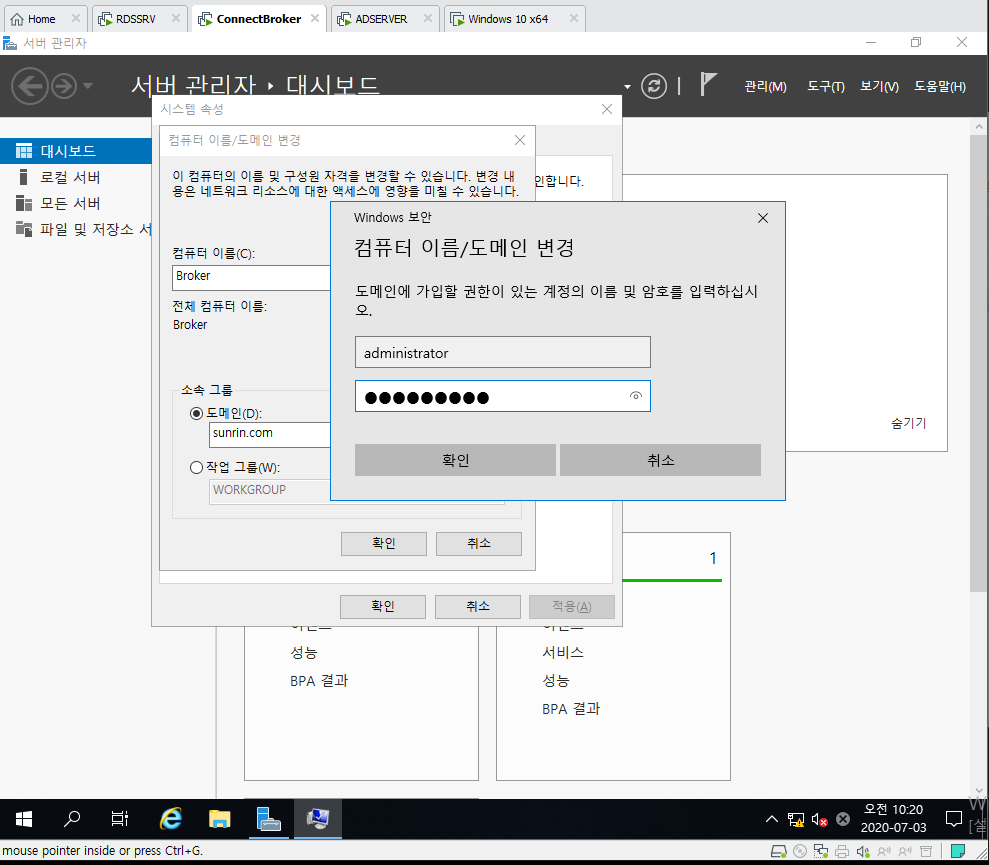 17. 도메인에 가입 할 PC에서 가입합니다. 실행 창에서 sysdm.cpl 입력하면 들어갈 수 있습니다.