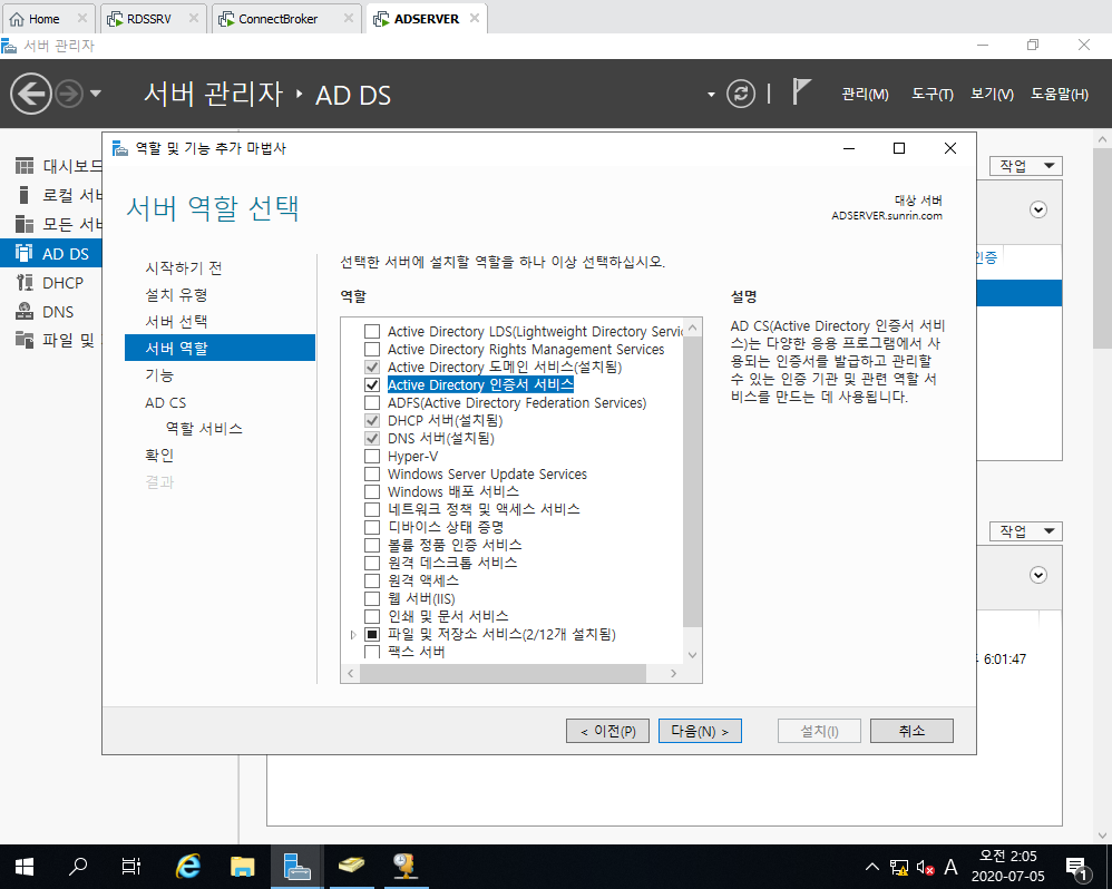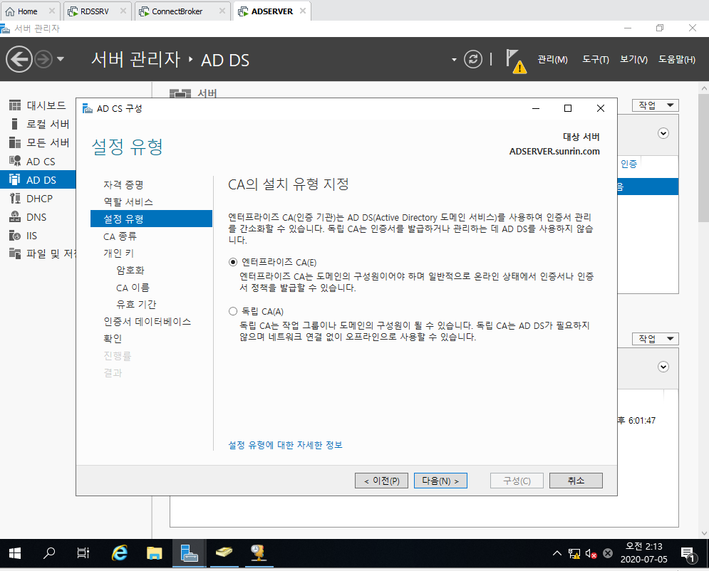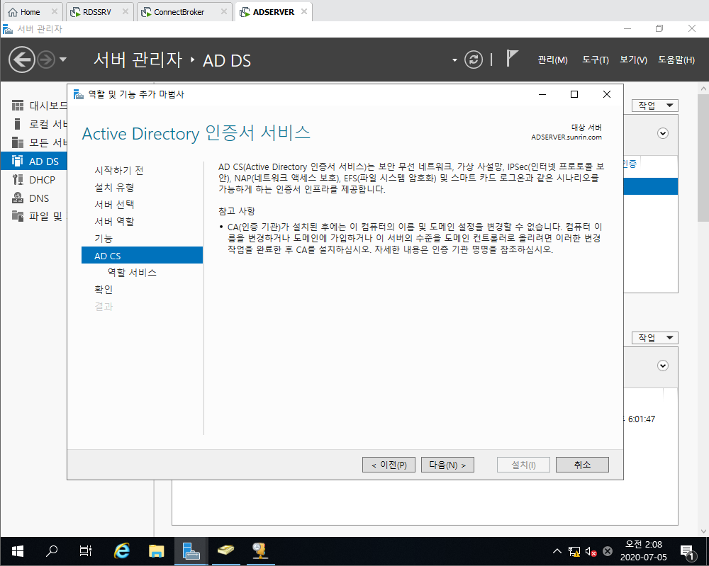 오늘은 인증서 서비스를 설치해보겠습니다.