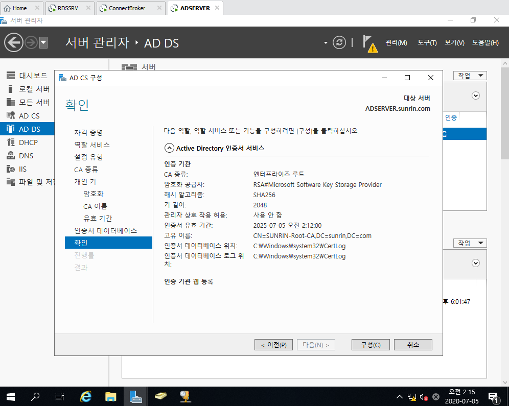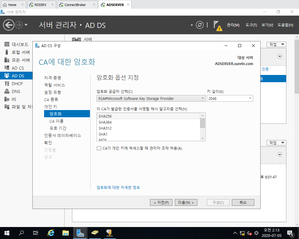 18. CA이름을 지정합니다. 예) SUNRIN-Root-CA