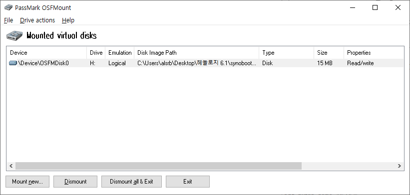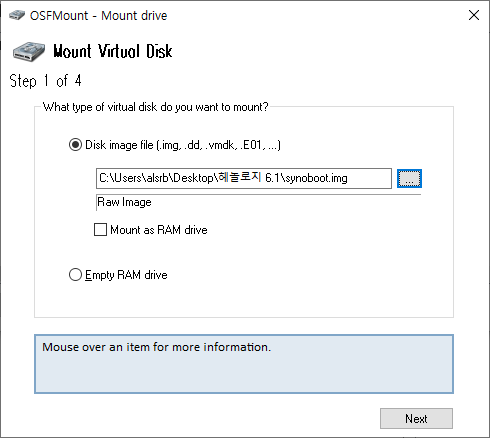 1. 우선 osfmount.exe를 설치합니다.