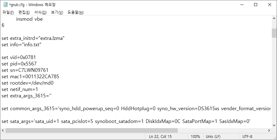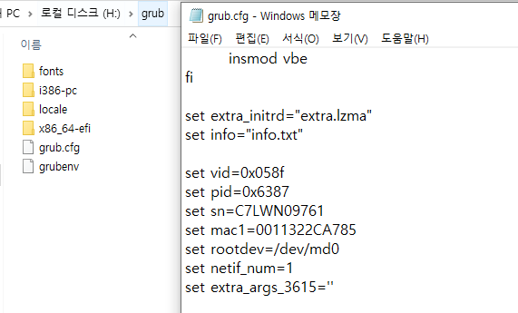 7. 적어둔 vid, pid를 grub.cfg 파일 내용을 수정해줍니다.