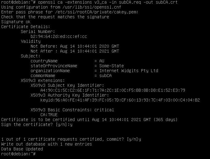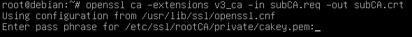 암호를 입력하면 이렇게 subCA를 위한 인증서가 만들 수 있습니다.