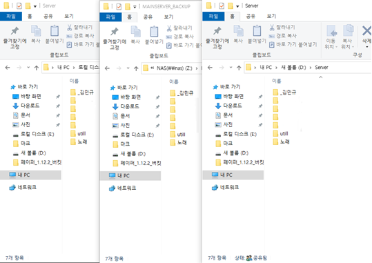 (디스크 D(원본) 디스크 E(사본) 똑같이 백업되고있는 것을 확인 할 수 있다.)