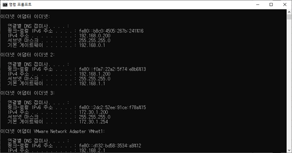 인터넷이 3개가 연결된 것을 볼 수 있다. (서버는 고정 IP를 사용해야 안정성에 좋긴 때문에 .200으로 통일했다)