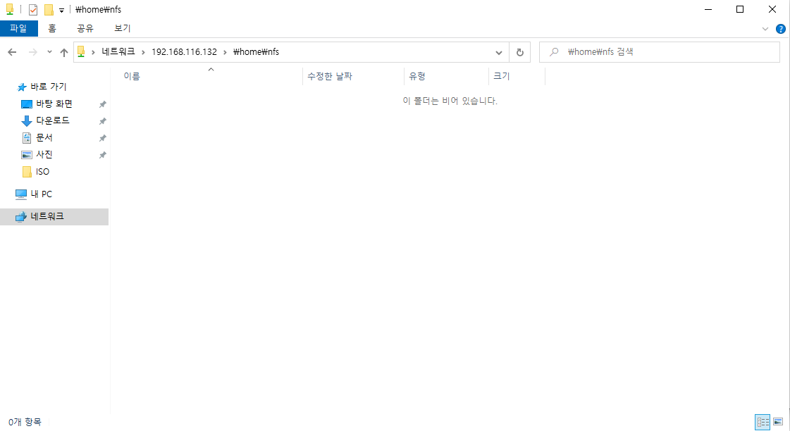 윈도우 + r 실행창에서 \\192.168.116.132\home\nfs를 입력합니다.