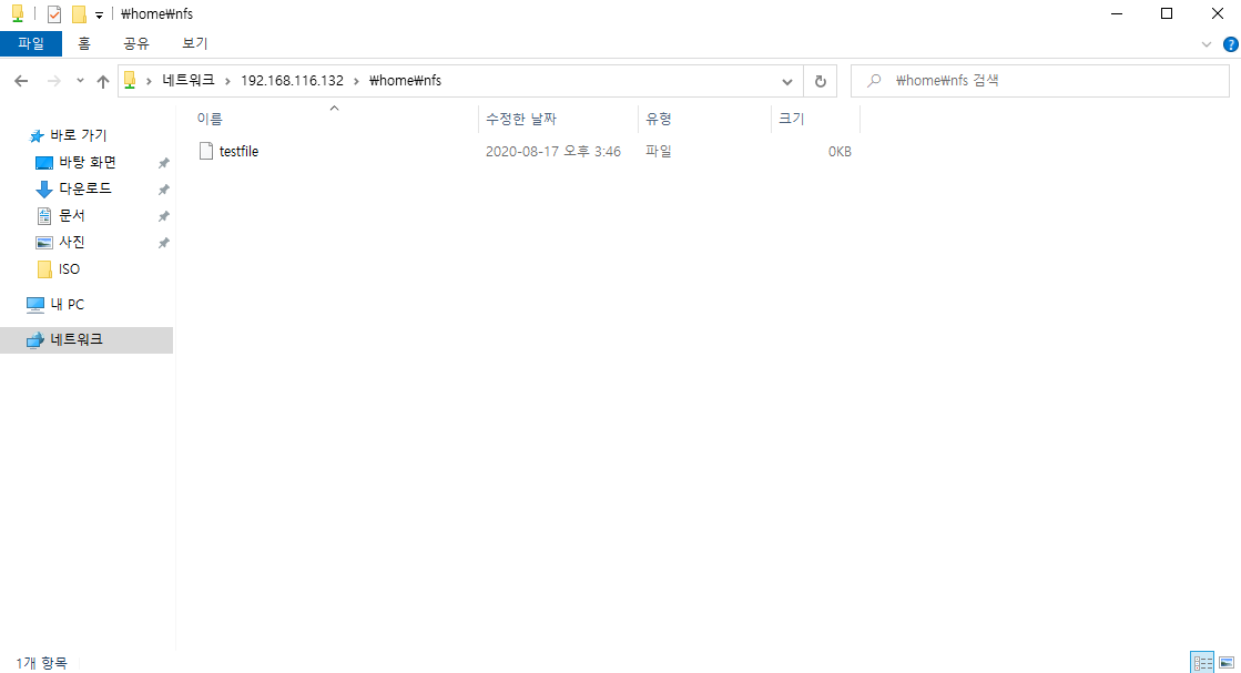 윈도우 + r 실행창에서 \\192.168.116.132\home\nfs를 입력합니다.