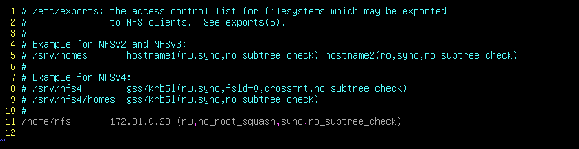 #vi /etc/exports 로 11번줄 내용을 추가해줍니다.
