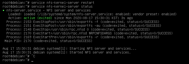 # apt-get install -y nfs-kernel-server 명령어로 패키지를 설치합시다.