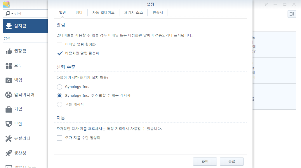 먼저 시놀로지 커뮤니티 패키지센터를 등록해야합니다.
