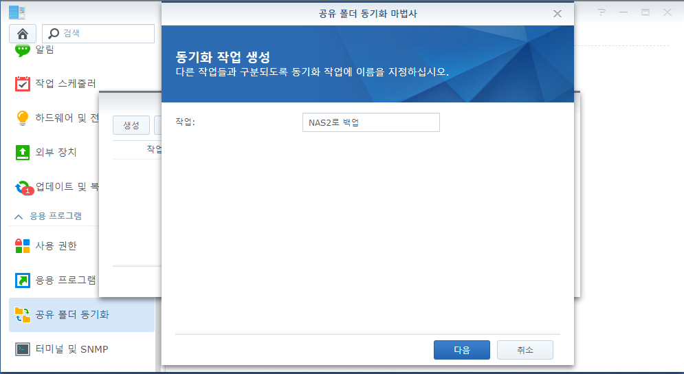 이제 사용중인 나스에서 공유 폴더 동기화를 들어갑니다.