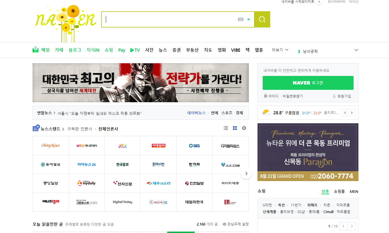 예를 들어 웹페이지를 들어가보겠습니다.