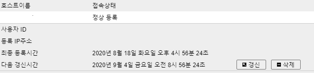 사용자 ID에는 각자 메일주소를 입력해주고 DDNS등록을 눌러주시면 1~2분 후 등록이 완료됩니다.