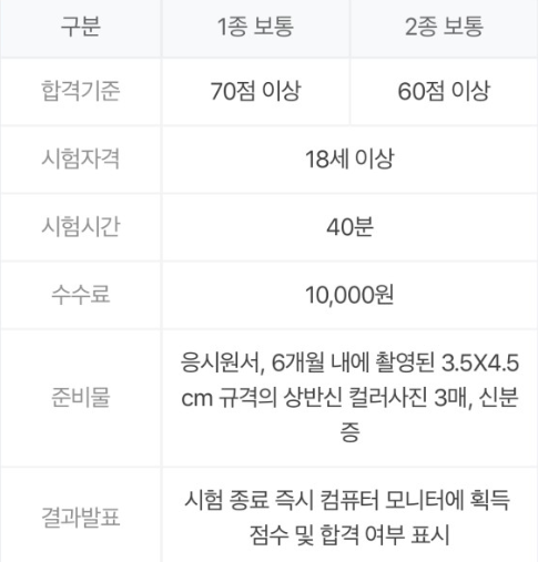 제가 취득한 1종 보통 기준으로 시험시간은 40분이고 70점 이상 맞아야 합격입니다.
