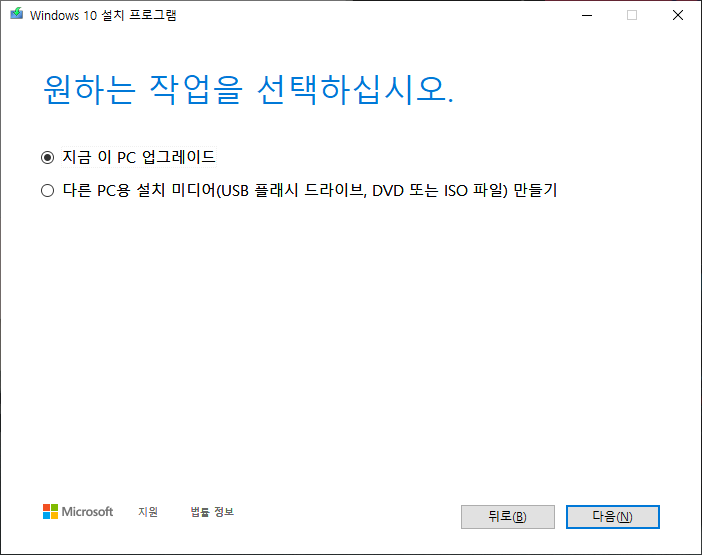 여기서 위에 옵션을 선택하시면 현재 사용 중인 PC를 업그레이드하실 수 있고
