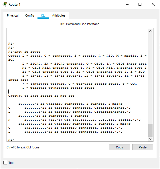이제 R1에서 show ip route로 라우팅 테이블을 봅시다.