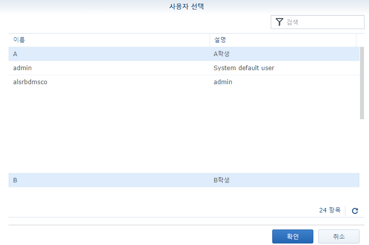 이렇게 사용자를 선택했으면 확인을 눌러줍니다.