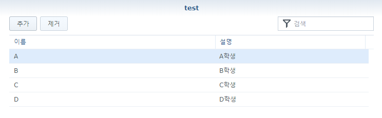 그럼 이렇게 test그룹에 A B C D 학생이 등록된 것을 볼 수 있습니다.