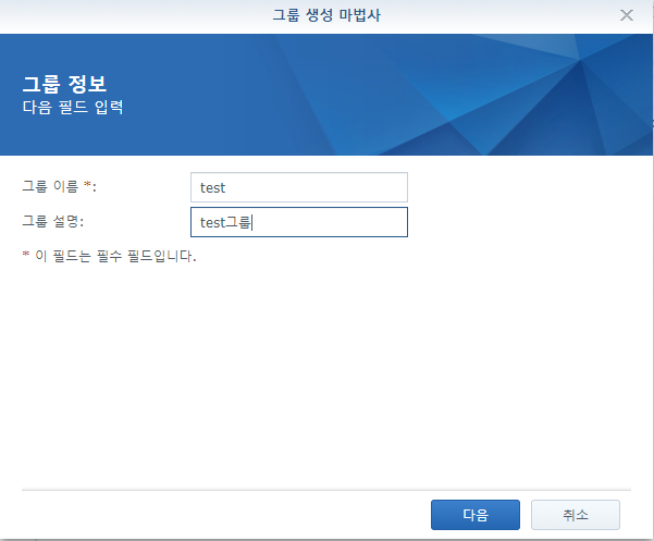 아래 그룹 이름과 설명을 적어주시고 다음으로 넘어갑니다.