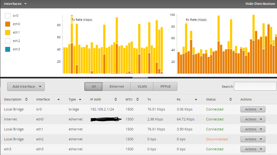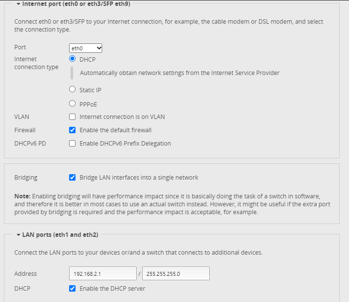 Bridging 옵션을 선택하게 되면 eth1과 eth2가 같은 역할을 하게 됩니다.
