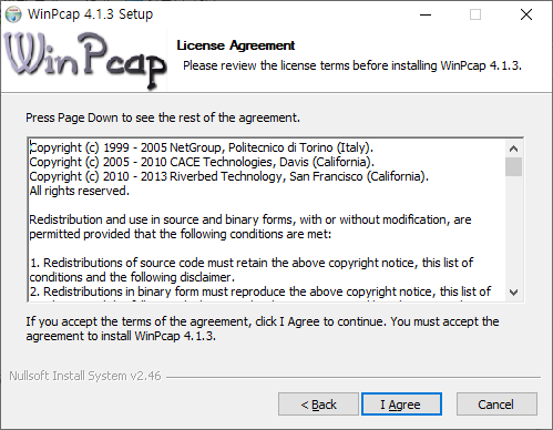 설치가 완료되면 이제 WinPcap설치를 진행합니다.