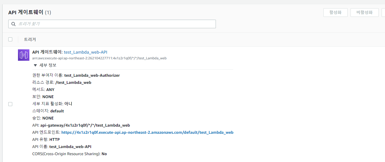 하단에 API 게이트웨이의 정보를 보면 API엔드포인트가 보이는데 옆에 링크를 들어가 봅시다.