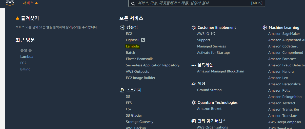 먼저 메인 - 서비스 - Lambda에 들어가 주세요.