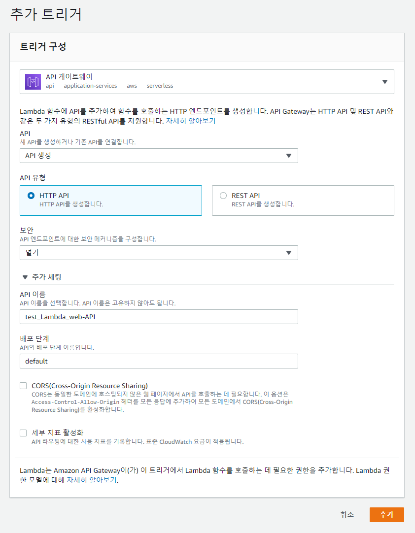 이제 왼쪽에 트리거 추가를 눌러 API 게이트웨이를 선택해줍니다.