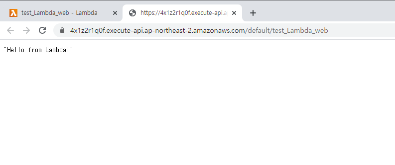 그럼 이렇게 Hello from Lambda! 가 뜨는 것을 알 수 있습니다.