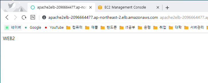 저는 보기 편하게 웹서버1에 WEB1 웹서버 2에 WEB2가 뜨도록 수정하겠습니다.