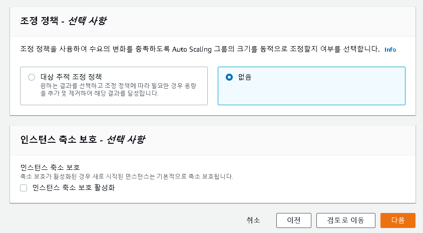 이번 작업은 간단하게 Auto Scaling을 어떤 조건에 실행시키는지 설정하는 단계입니다.