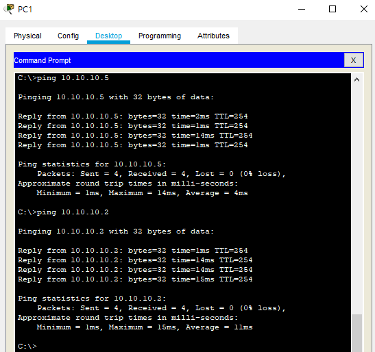R1에서 설정을 다했다면 PC1에서 PC2로 ping을 보내봅시다.