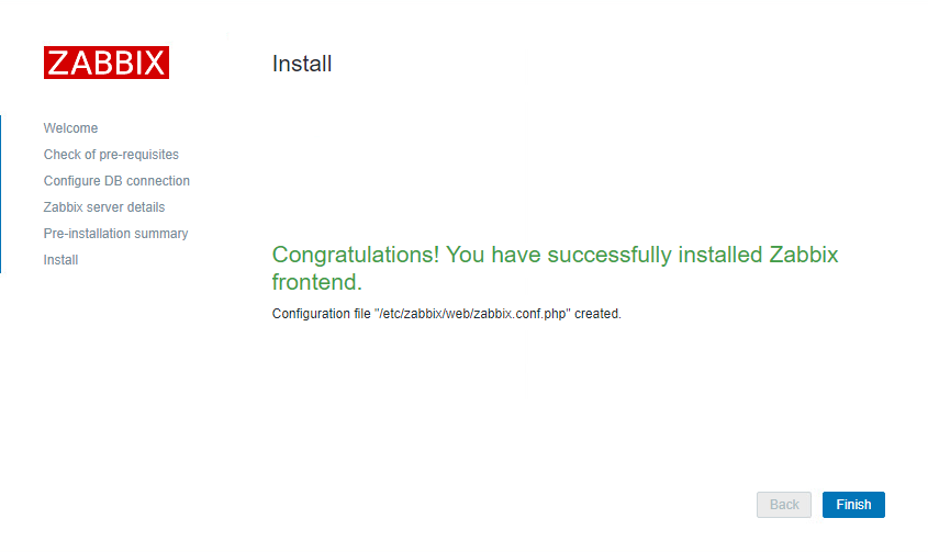 http://[서버IP]/zabbix 를 주소창에 입력하여 아래와 같은 화면이 출력이 되면 성공입니다.